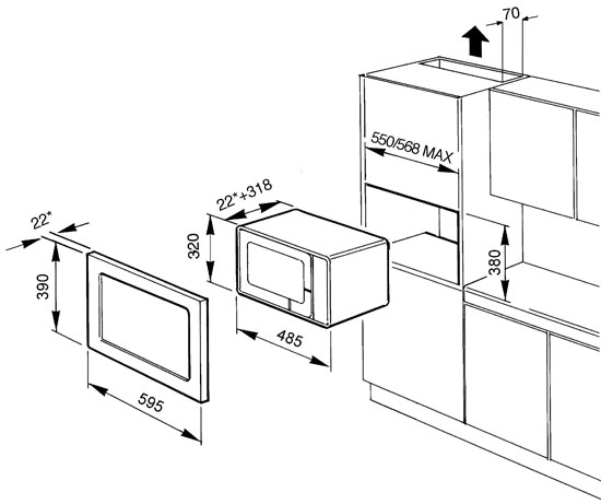 Микровълнова фурна за вграждане 20л - SMEG FME20TC3