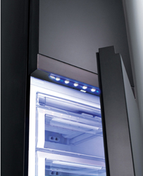 Приятната за очите подсветка се включва веднага с отварянето на вратата на хладилника. Както е  известно, светодиодите не само отдават по-малко топлина, но са и по-икономични, така че веднага се забелязва разлика в сметката за ток. В добавка към това, оригиналният дизайн на подсветката, позволява да се освети всеки ъгъл на хладилната камера, така че откриването на нужните продукти да не отнема много време