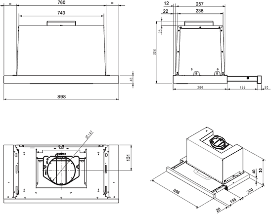 Размери В/Ш/Д - 32,4см/89,8см/30см