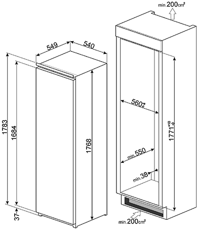 Охладител за вграждане 310л - SMEG S7323LFEP