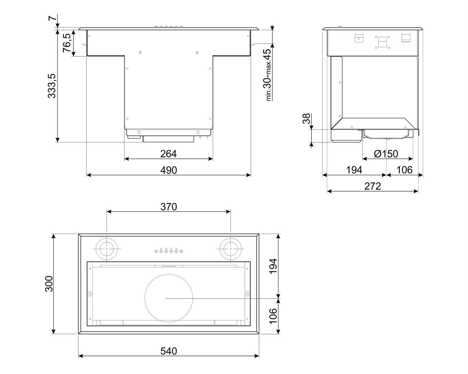 *Периметрално засмукване - създава се вакумен ефект по периметъра на аспиратора. По този начин парата не се отклонява от зоната на готвене.