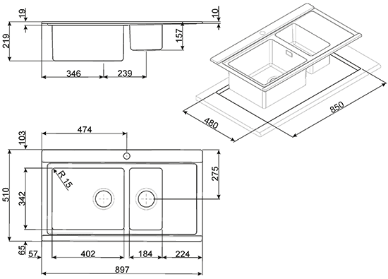 Размер корито: 40х34,2х21,9см и 18,4х34,2х21,9см