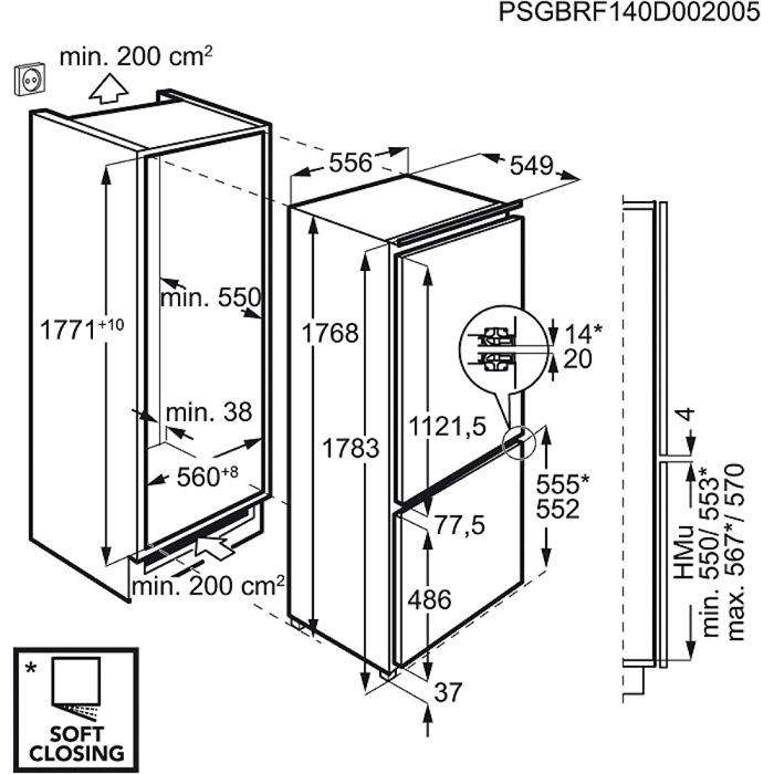 Размери - В/Ш/Д 176,9см/55см/55,6см