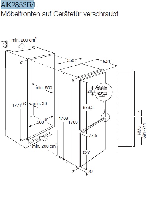Хладилник с фризер за вграждане 260л - AEG AIK2853L