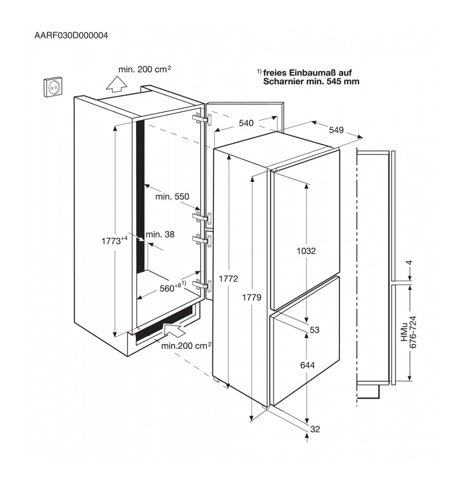Хладилник с фризер за вграждане 268л - AEG SCB41811LS