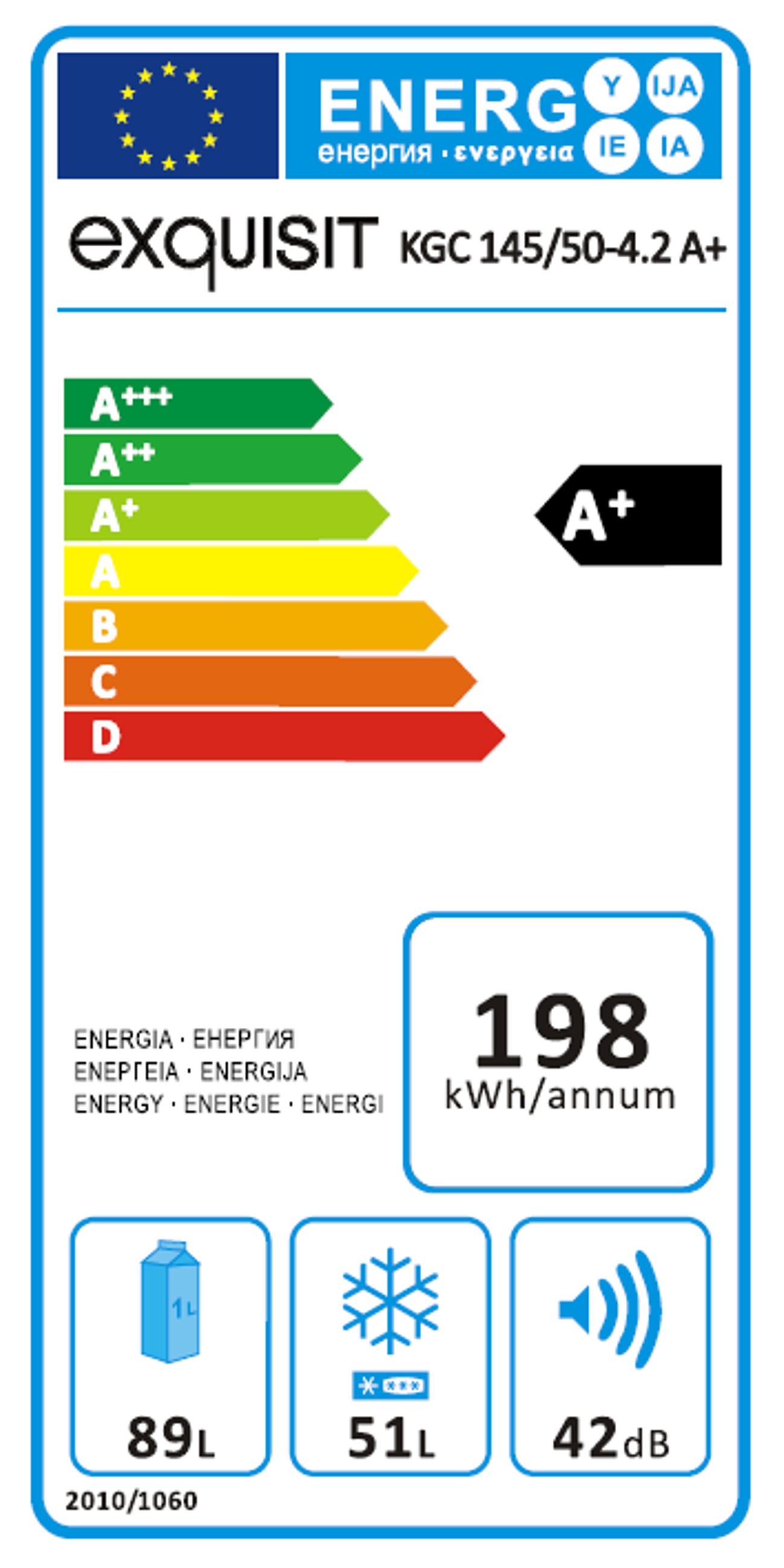 Хладилник с фризер 140л - EXQUISIT KGC145/50-4.2A+SI
