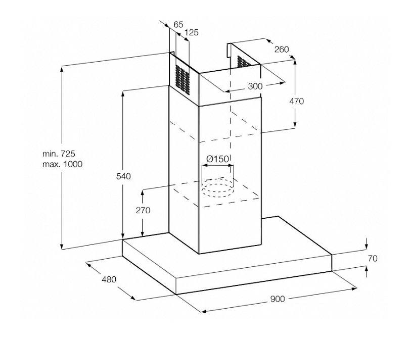 Размери В/Ш/Д - 72,5-100см/90см/48см
