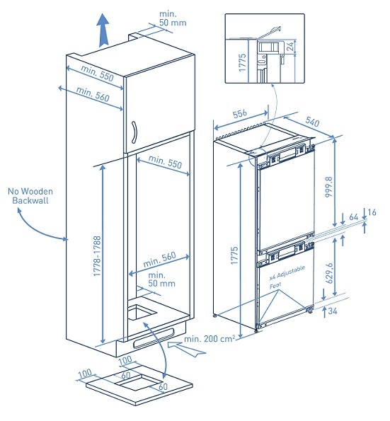 Хладилник с фризер за вграждане 182л - GRUNDIG EDITION 70 A++