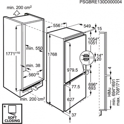Хладилник с фризер за вграждане 260л - AEG SCB61821LF
