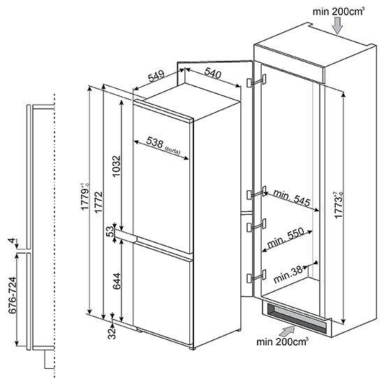 Хладилник с фризер за вграждане 263л - SMEG C3172NP