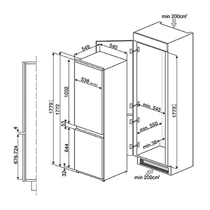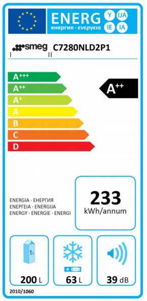 Хладилник с фризер за вграждане 263л - SMEG C7280NLD2P1