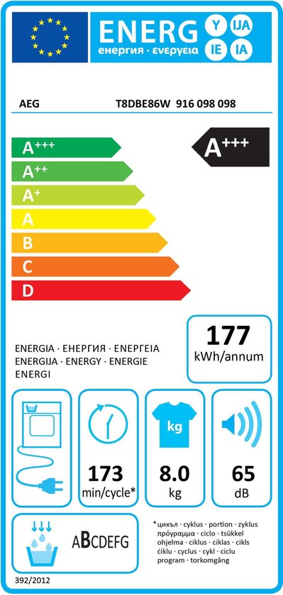 • ЕНЕРГИЕН ЕТИКЕТ - AEG T8DBE86W