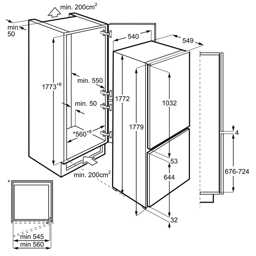 Хладилник с фризер за вграждане 268л - AEG SCB61811LS