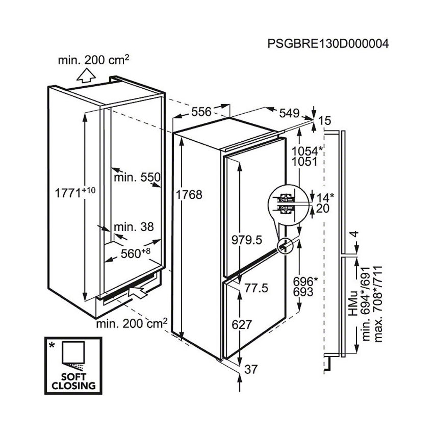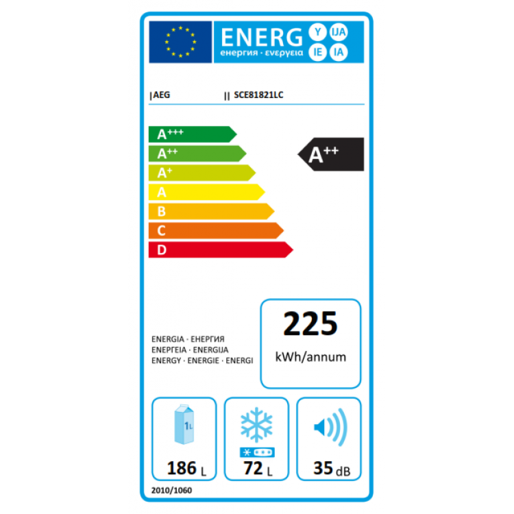 Хладилник с фризер за вграждане 258л - AEG SCE81821LC
