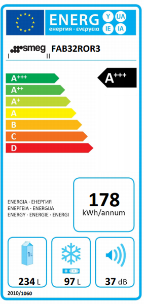 Хладилник с фризер 331л - SMEG FAB32ROR3