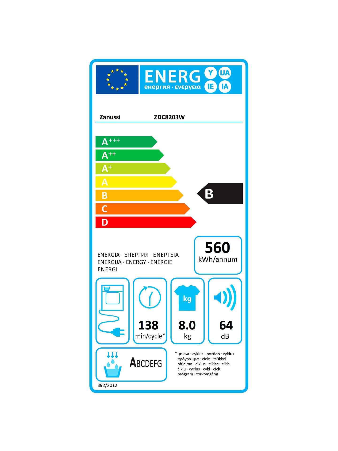• ЕНЕРГИЕН ЕТИКЕТ - ZANUSSI ZDC8203W