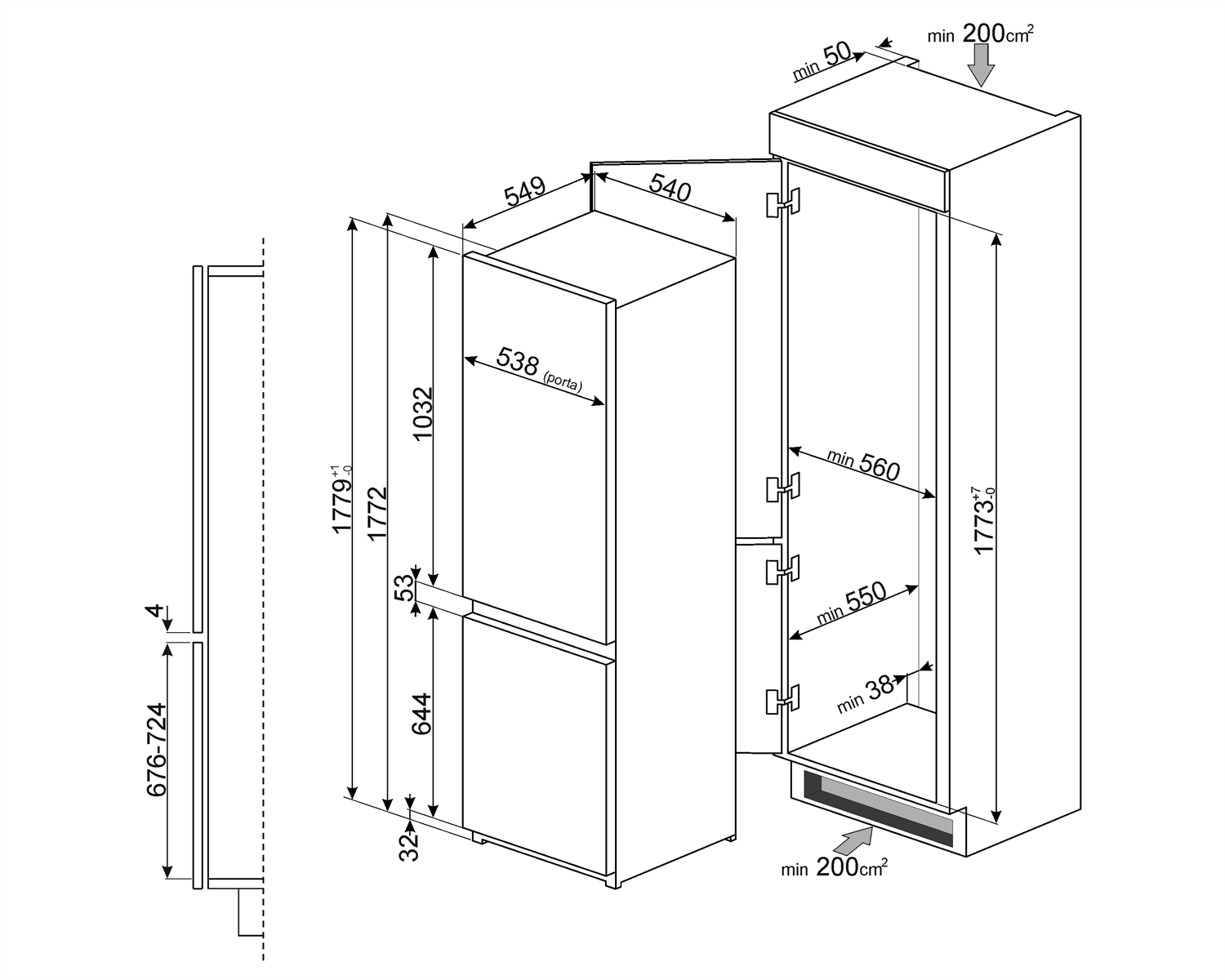 Хладилник с фризер за вграждане 272л - SMEG C7280F2P1