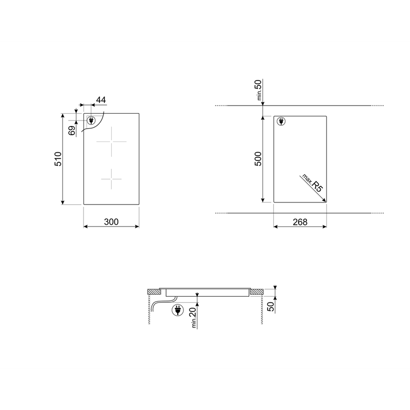 Плот стъклокерамичен 2 зони - SMEG SE232TD1