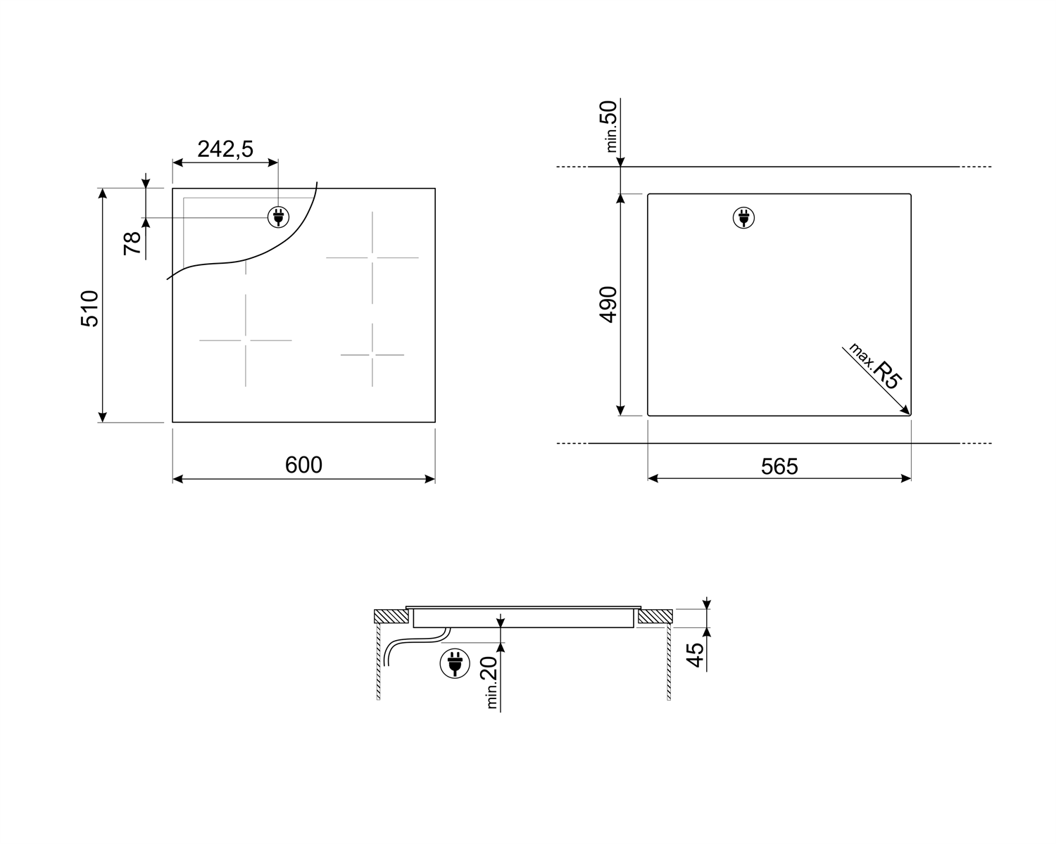 Стъклокерамичен плот 4 зони - SMEG SE264TD