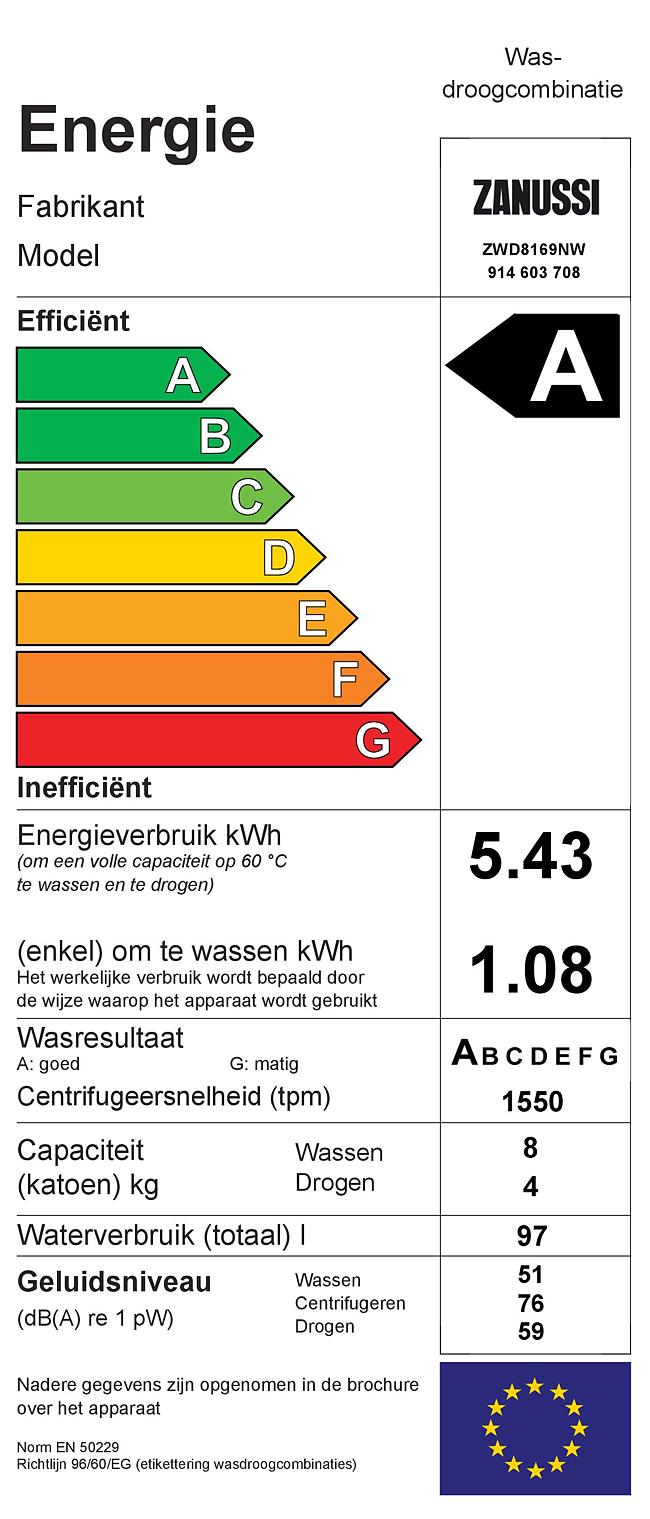 • ЕНЕРГИЕН ЕТИКЕТ - ZANUSSI ZWD8169NW