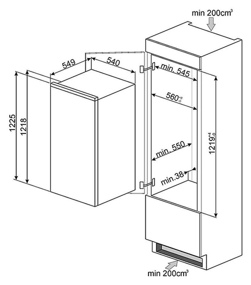 Охладител за вграждане 208л - SMEG S3L120P1
