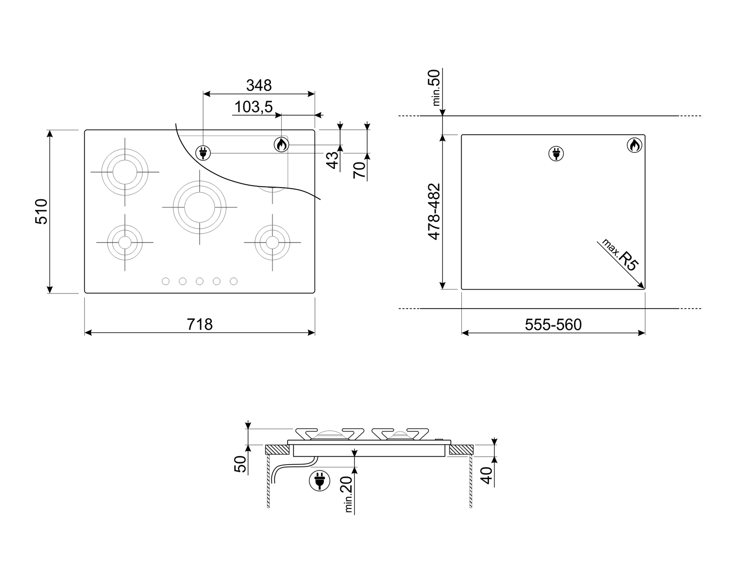 Газов плот 5 зони - SMEG P705ES