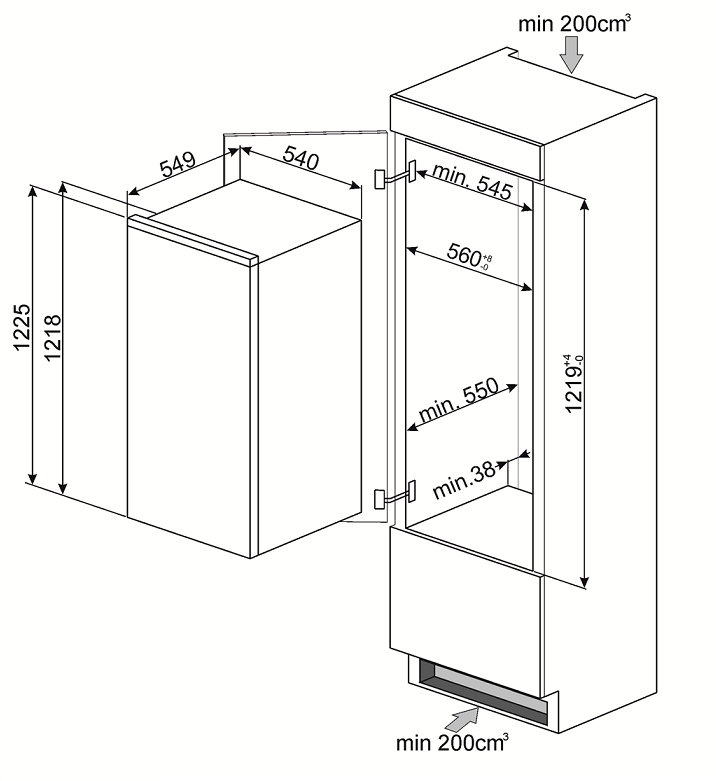 Хладилник с камера за вграждане 187л - SMEG S3C120P1