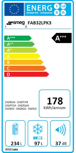 Хладилник с фризер 331л - SMEG FAB32LPK3