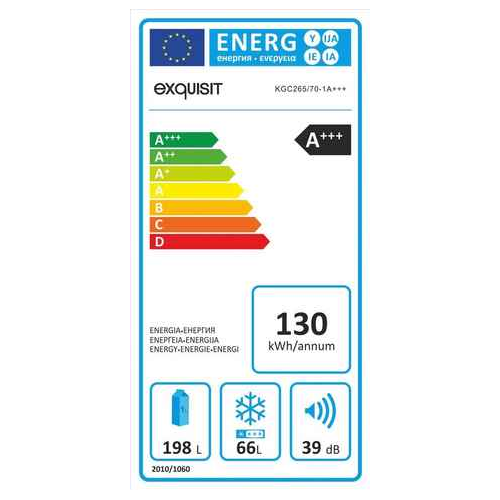 Хладилник с фризер 264л - EXQUISIT KGC265/70-1A+++