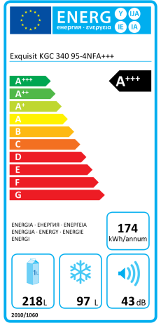 Хладилник с фризер 315л - EXQUISIT KGC340/95-4NFA+++