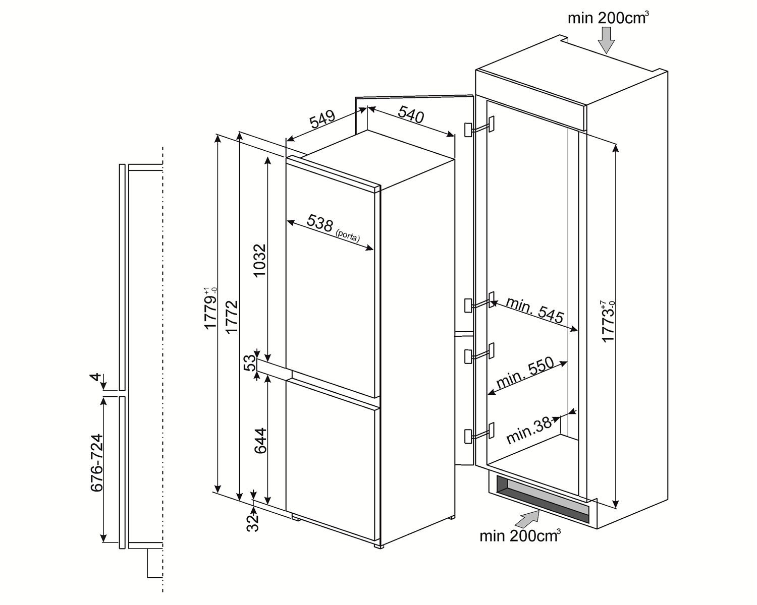 Хладилник с фризер за вграждане 277л - SMEG C3170FP1