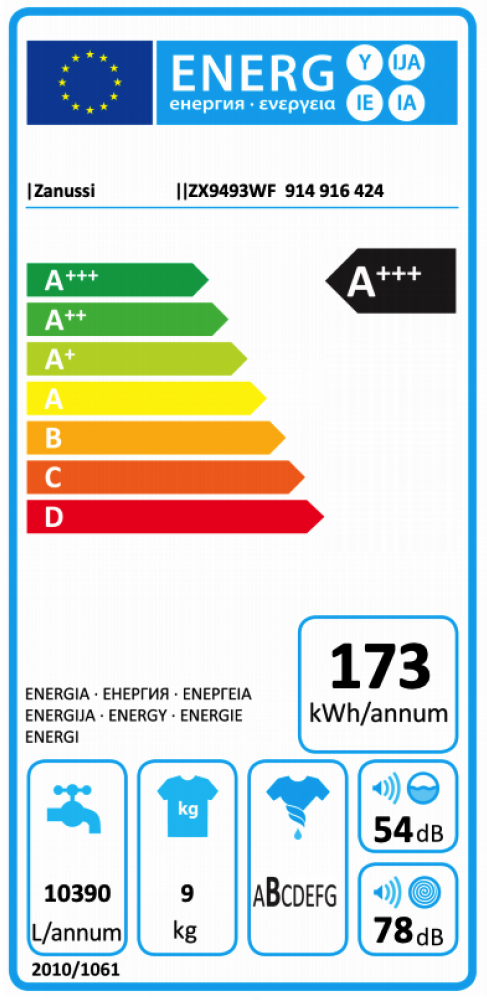 • ЕНЕРГИЕН ЕТИКЕТ - ZANUSSI ZX9493WF