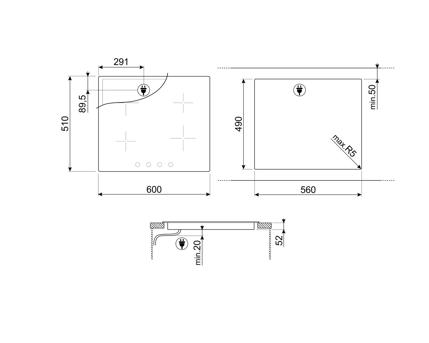 Плот индукционен 4 зони - SMEG SI364B