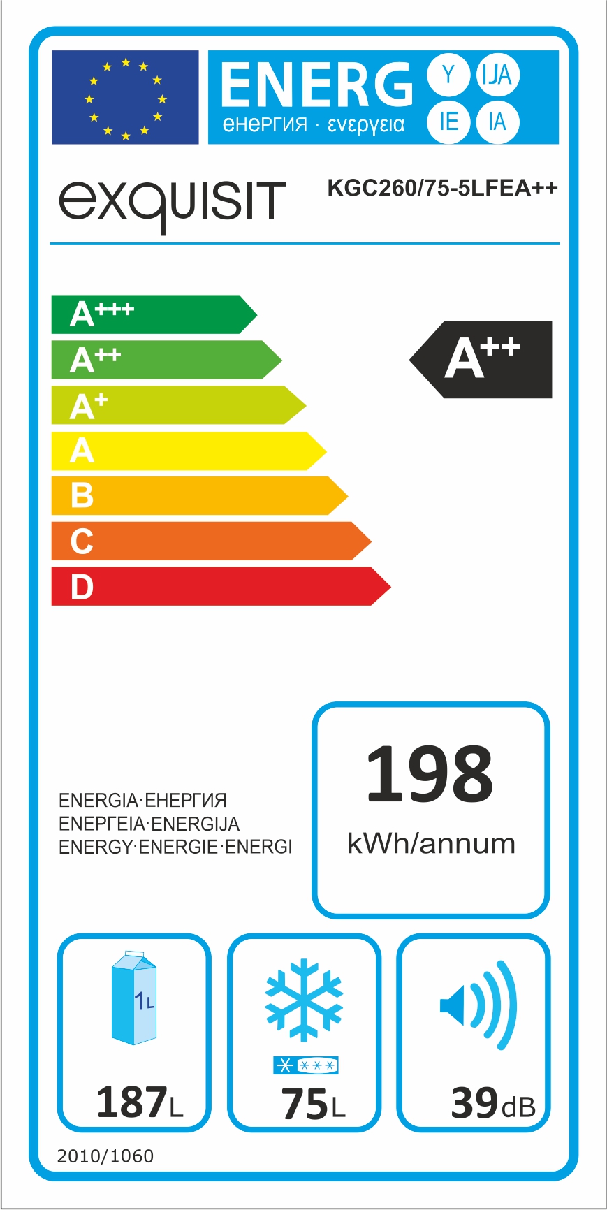 Хладилник с фризер 262л - EXQUISIT KGC260/75-5LFEA++