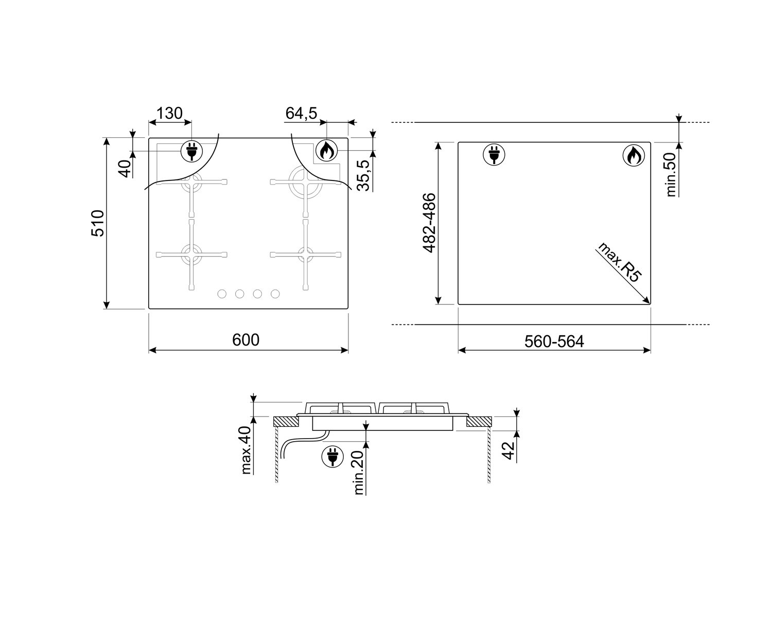 Газов плот 4 зони - SMEG PV164S1