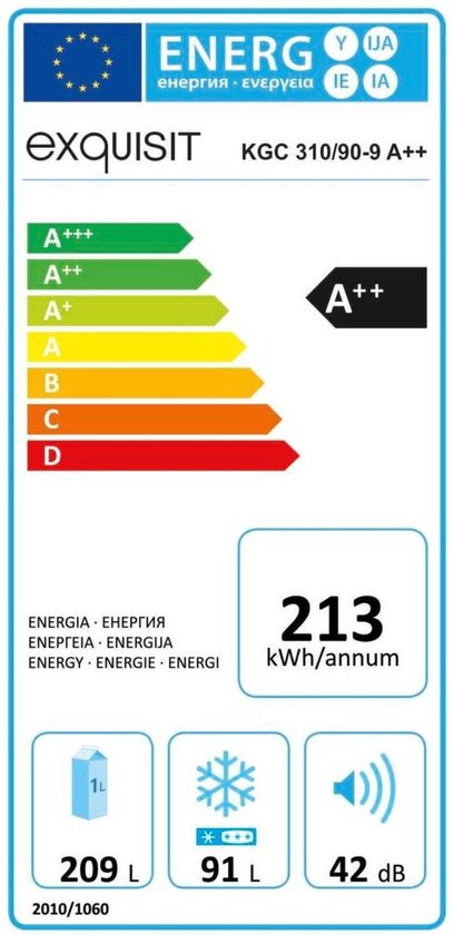 Хладилник с фризер 300л - EXQUISIT KGC310/90-9A++MS