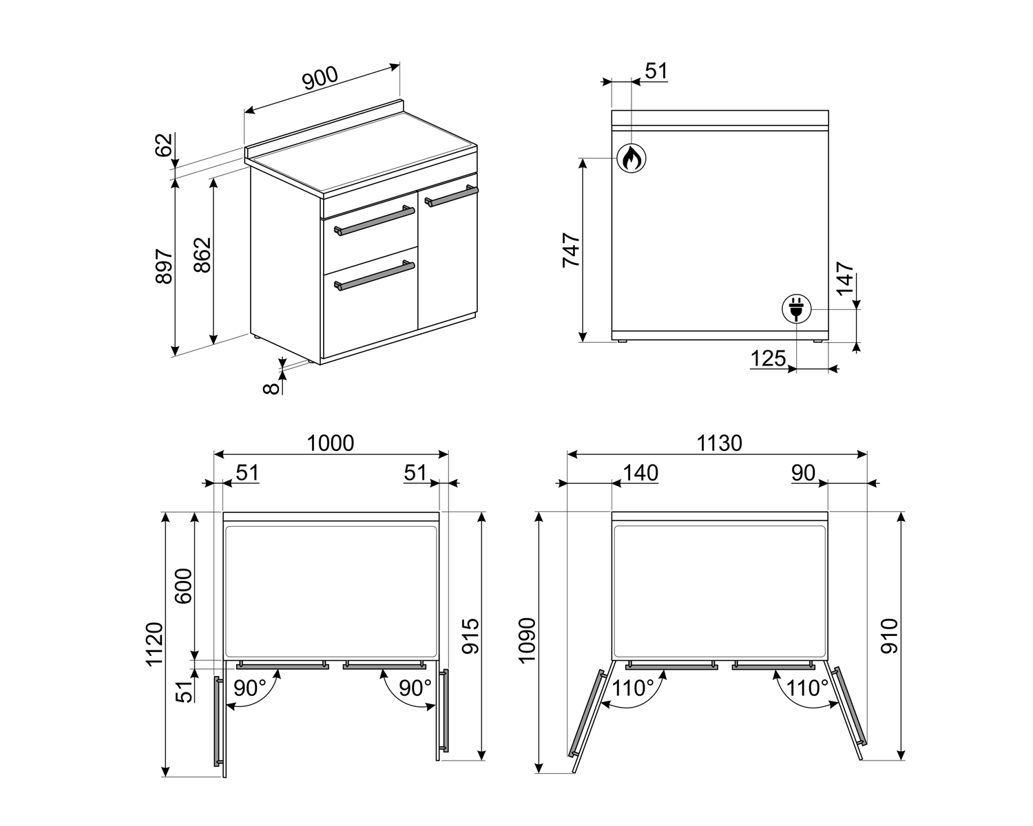 Размери - В/Ш/Д 89,5см-91см/90см/60см