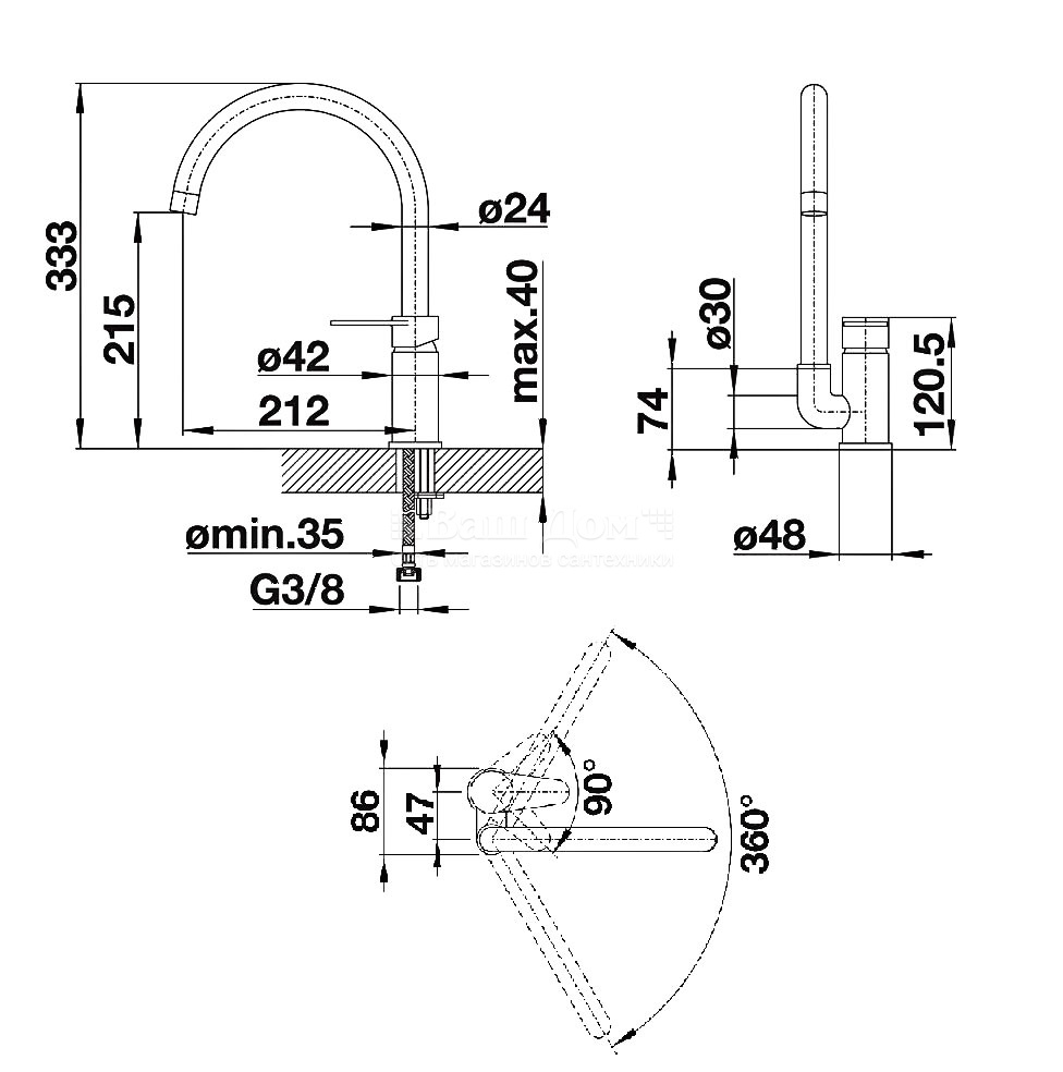 Височина в статично положение - до чучура/общо 215/333мм