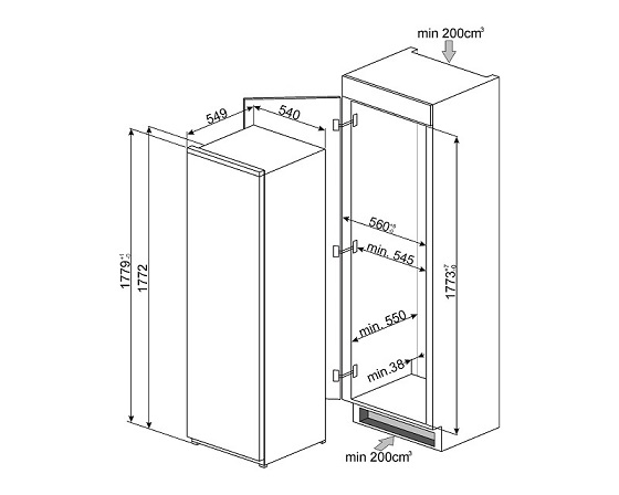 Хладилник с камера за вграждане 284л - SMEG S7298CFD2P1