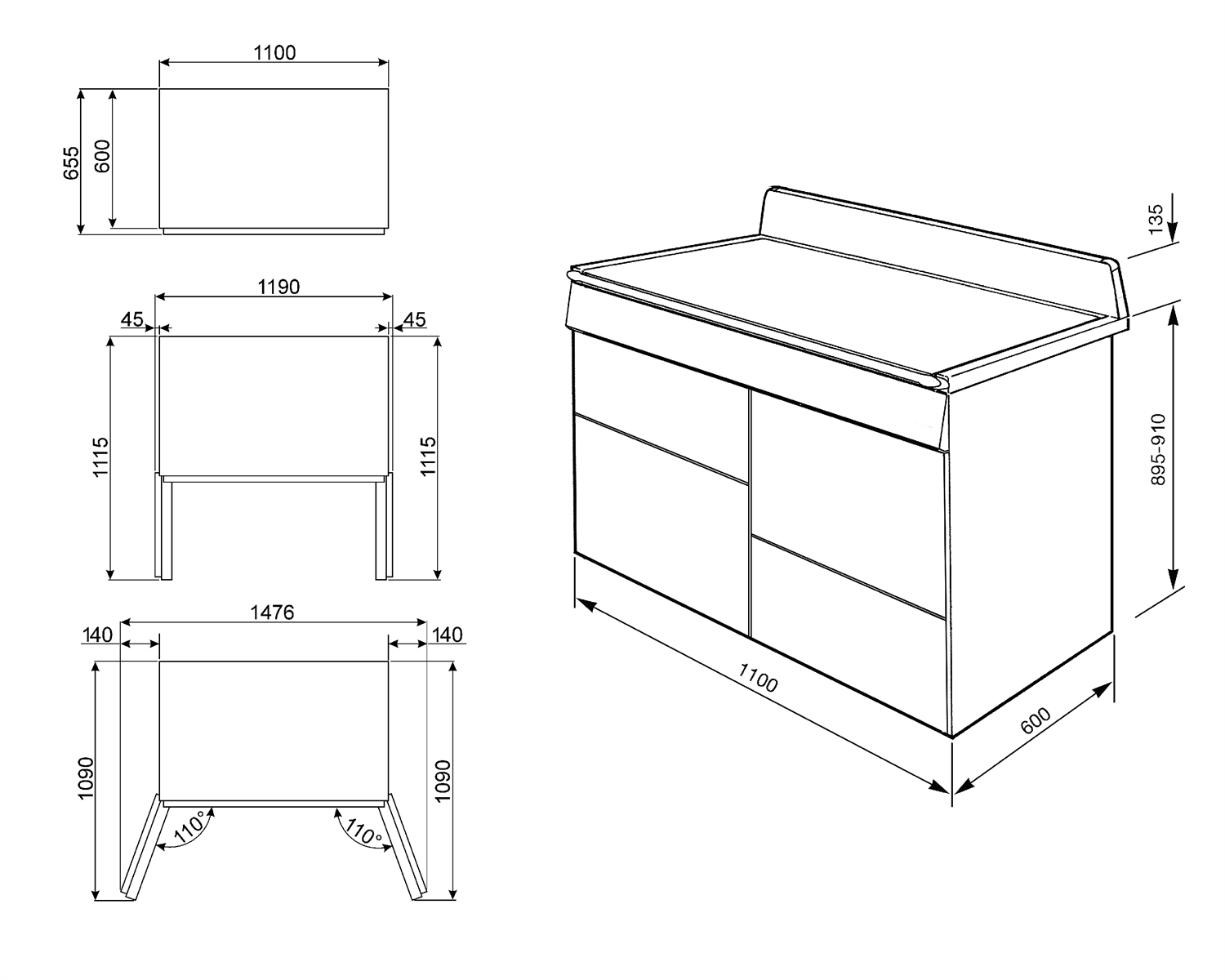 Размери - В/Ш/Д 89,5см-91см/110см/60см