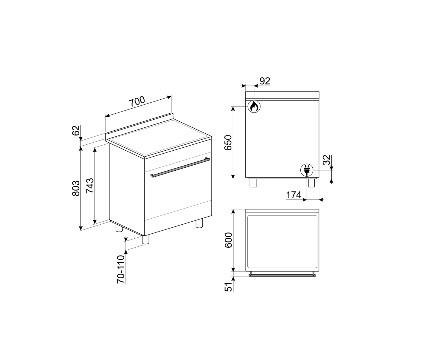 Комбинирана готварска печка 70см - SMEG C7GPX9