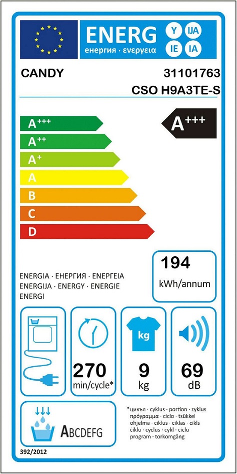 Сушилня кондензаторна 9кг - CANDY CS0H9A3TE-S