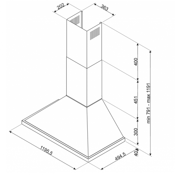 Размери В/Ш/Д - 119,1см/119,6см/49,5см