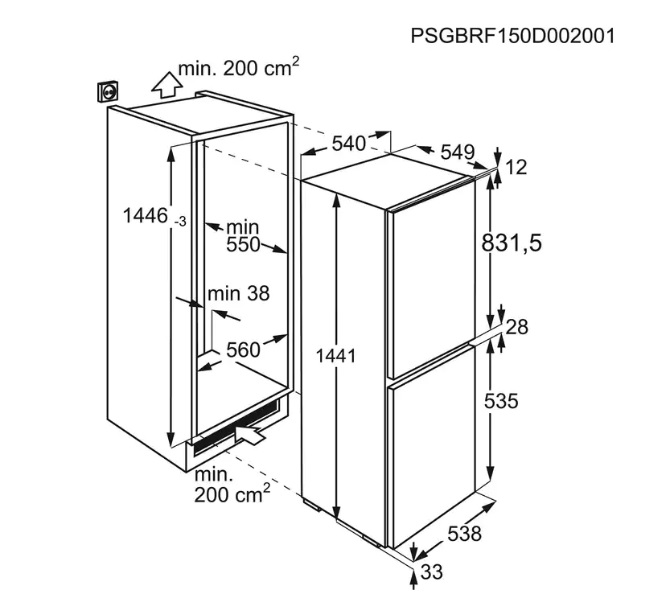 Хладилник с фризер за вграждане 220л - ZANUSSI ZNLN14FS