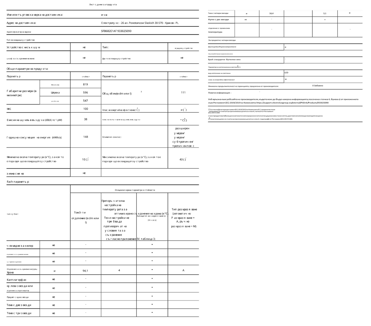 • ЕНЕРГИЕН ЕТИКЕТ - AEG SFB682E1AF