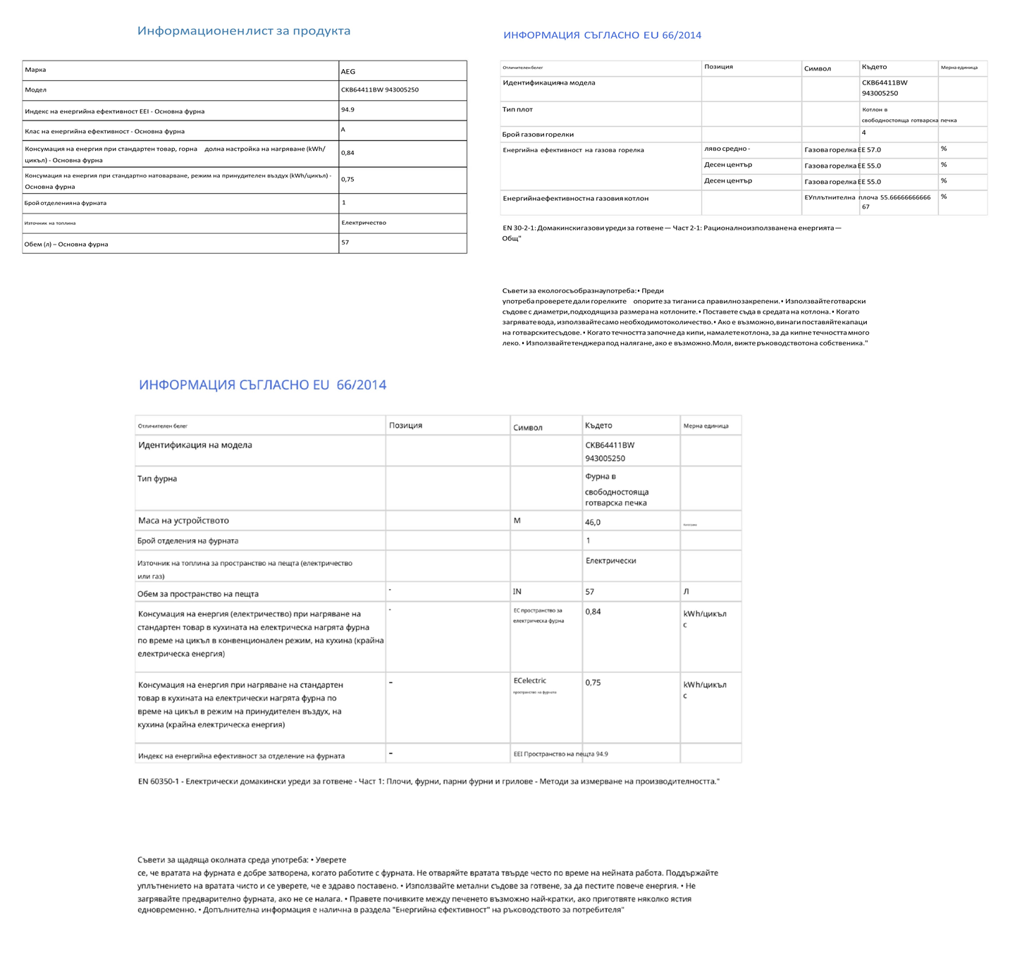 • ЕНЕРГИЕН ЕТИКЕТ - AEG CKB64411BW