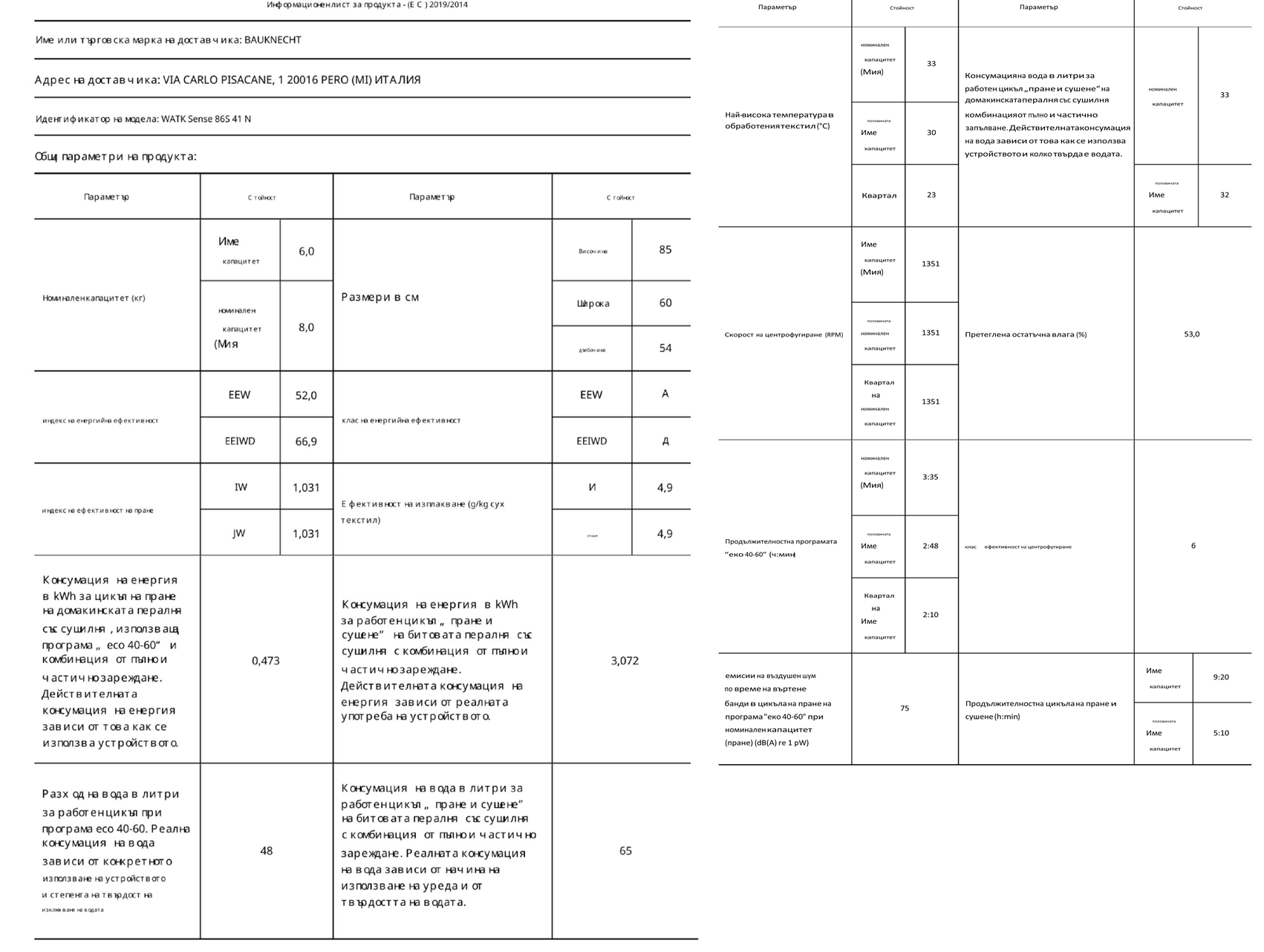 • ЕНЕРГИЕН ЕТИКЕТ - BAUKNECHT WATKSENSE86S41N