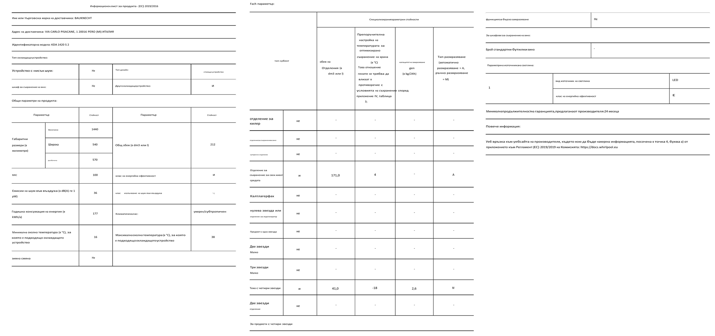 • ЕНЕРГИЕН ЕТИКЕТ - BAUKNECHT KDA1420S2