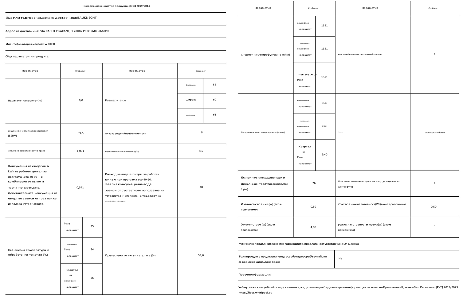 • ЕНЕРГИЕН ЕТИКЕТ - BAUKNECHT FW800B