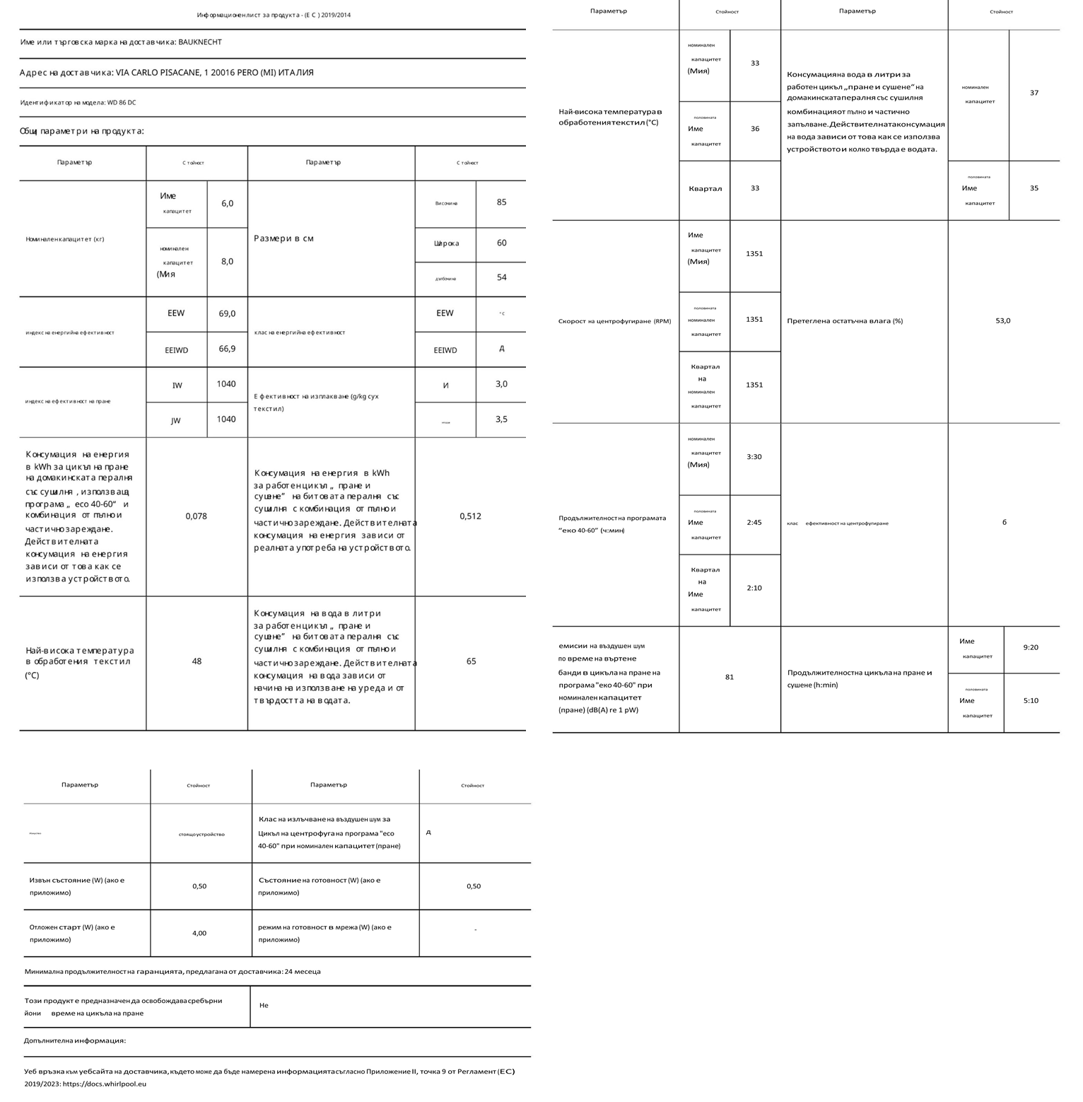 • ЕНЕРГИЕН ЕТИКЕТ - BAUKNECHT WD86DC